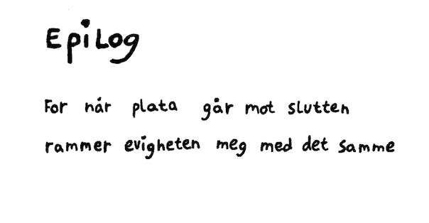 Da jeg jobbet med teksten ville jeg virkelig få frem det såre, og litt bittersøte. For å finne de riktige ordene, måtte jeg lete litt lenge, for personlig er grensen til kleint ganske lav. Samtidig så er det på et vis den teksten jeg er mest fornøyd med på plata, for den klarer å besrkive det jeg vil veldig tydelig og gjenkjenbart.