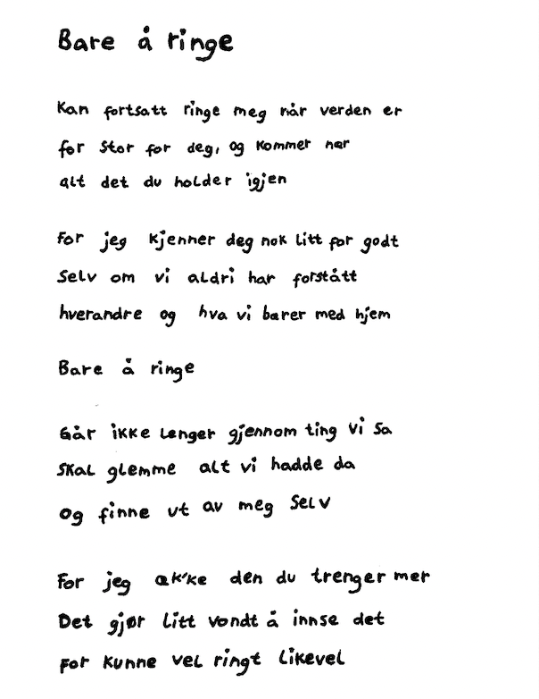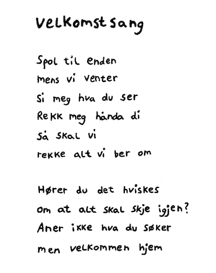 En morgen midt i skriveprosessen våknet jeg med denne sangen, som slutten av en drøm eller første tanke.