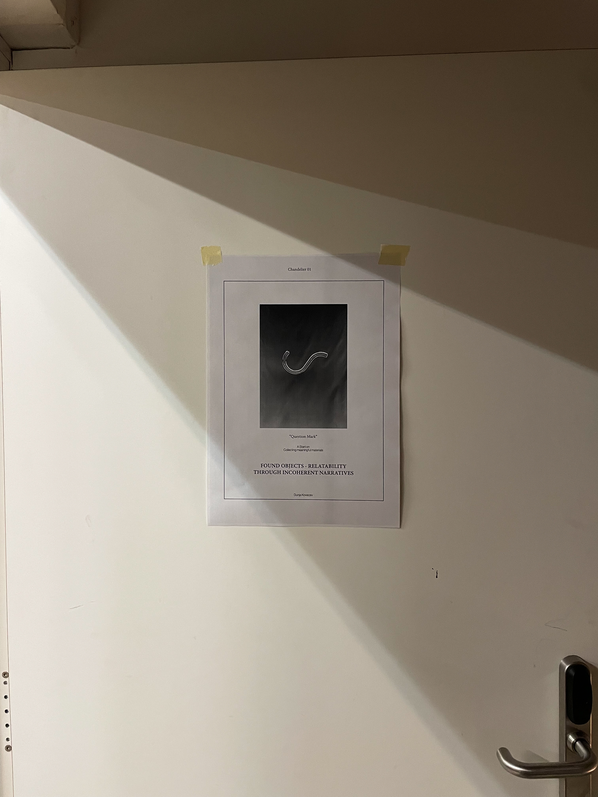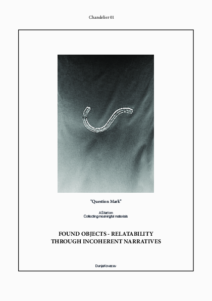 I WOULD LIKE TO COLLECT FOUND/DISCARDED OBJECTS. STARTING WITH THE TWO CHANDELIERS I FOUND ON MY WAY TO THE FIRST DAY OF CLASS THIS SEMESTER. THEY INSPIRED ME TO ALSO THINK ABOUT THE FORMS IN WHICH FOUND OBJECTS CAN BE MADE UP OF. I AM INTERESTED IN OBJECTS WHICH ARE MADE UP OF PARTS, TO REALLY TAKE THE TIME TO REMOVE EACH PIECE, TO GET TO KNOW IT. PUTTING IT BACK TOGETHER AGAIN, MAYBE WITH NO CLEAR STEPS ON THE REFORMATION. I AM INTRIGUED BY HOW THE POSITIONING OF OBJECTS AND THE RELATIONALITY OF NARRATIVE CAN ALTER OUR PERCEPTION ON THE APPRECIATION VALUE OF THINGS. I WANT TO USE FOUND-OBJECTS AND TREAT THEM AS ARCHIVAL ARTEFACTS. EXAMINE AND ANALYZE THEIR CHARACTERISTIC, MATERIALIZATION AND POSSIBLE ORIGIN. IN A VERY DOCUMENTED FORMAT.