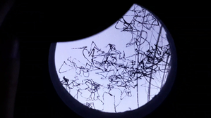 I therefore chose this technique to create a white panel on which I worked with black markers, excluding colour, as it already carries multiple layers of imagery that can hinder free interpretation. I then enclosed the work inside a black box that conceals this ‘portion of the inner spectrum’. It becomes visible only through small openings covered by transparent plastic discs, which reveal the hidden interior solely through the viewer’s active engagement.