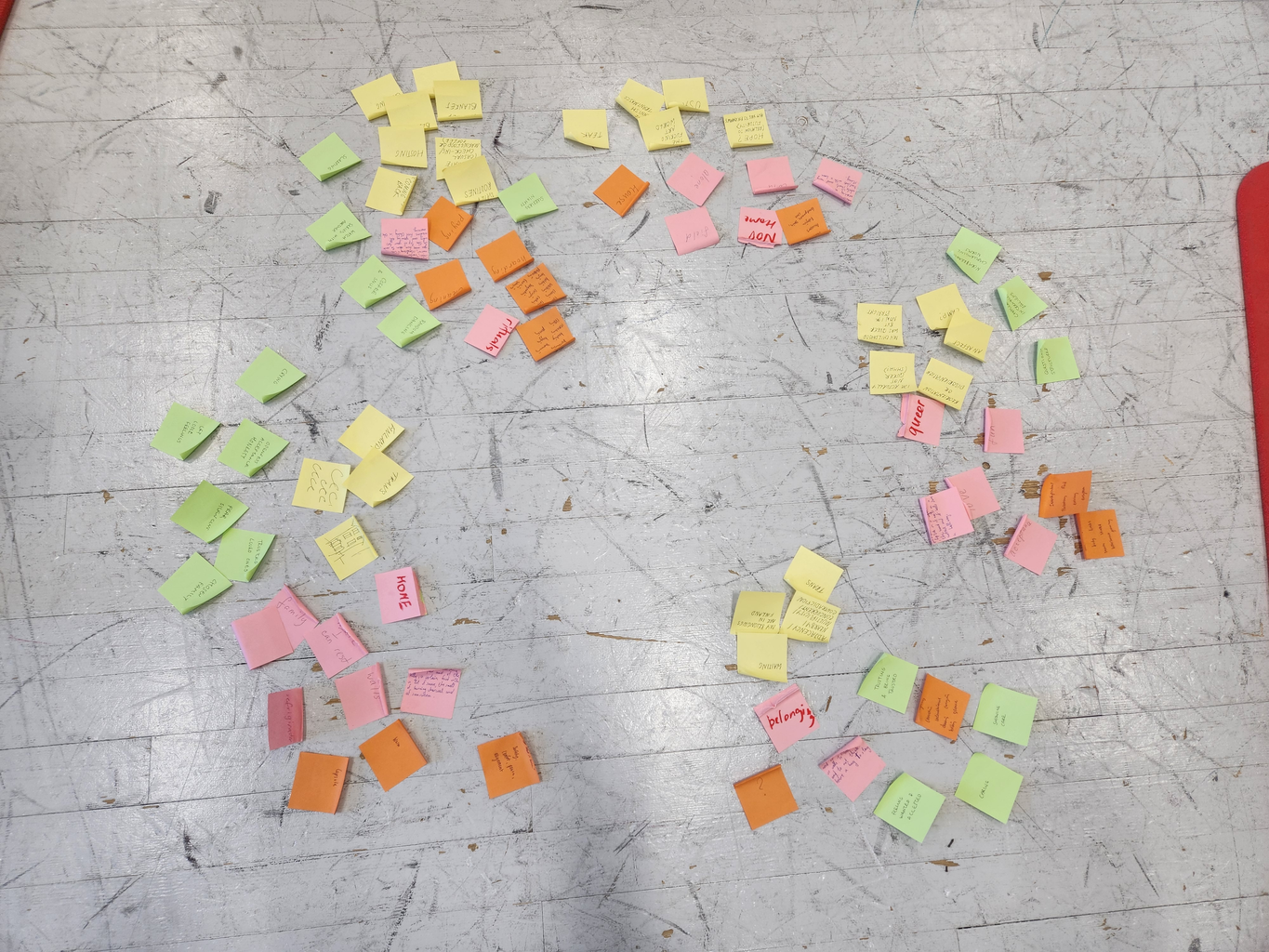 *with stickers - write as many concepts as you want and put on the floor in the right section*