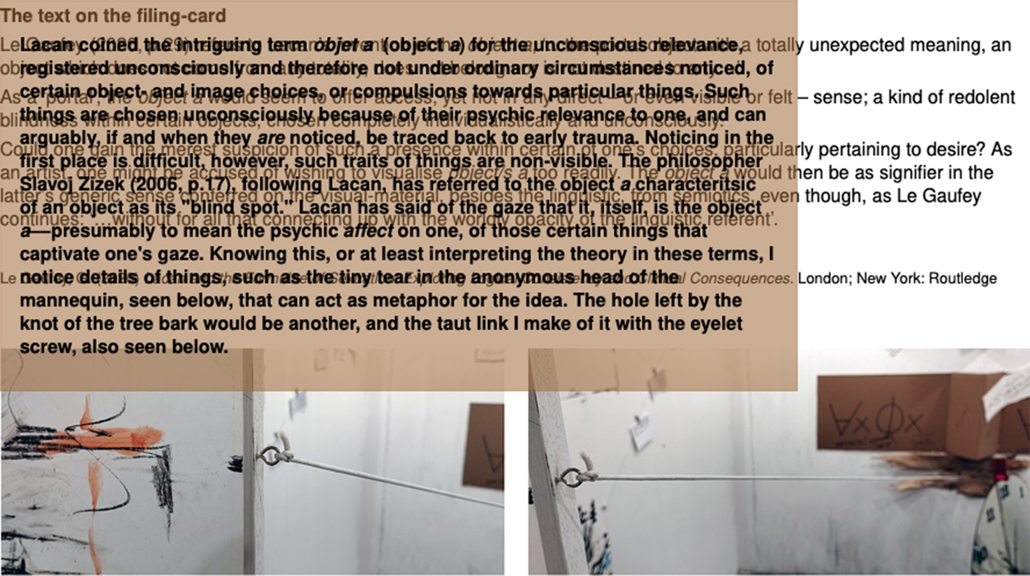 Underneath this text, in the exposition in its definitive format, I introduce and discuss the question of the Other, due to its relevance to my artistic practice, and include mention of some non-psychoanalytical examples, not least being a novel by the science-fiction writer Philip K. Dick, and an example of it inferred within his writing.