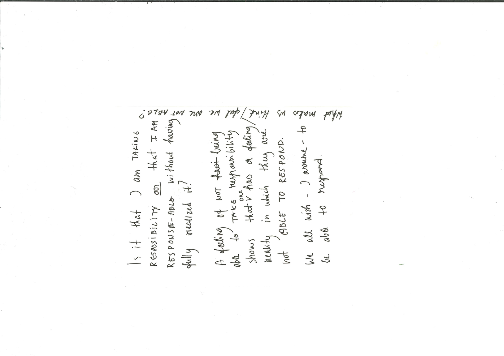 I pose that holding space is an act of extension, of becoming a room for another person(s) and their process to express into. This is what I knew how to do, intuitively: remain present, listen, perceive, respond. Like a therapist, I would say and do in response to what was released into our shared space. I/we and the room support emergence.
