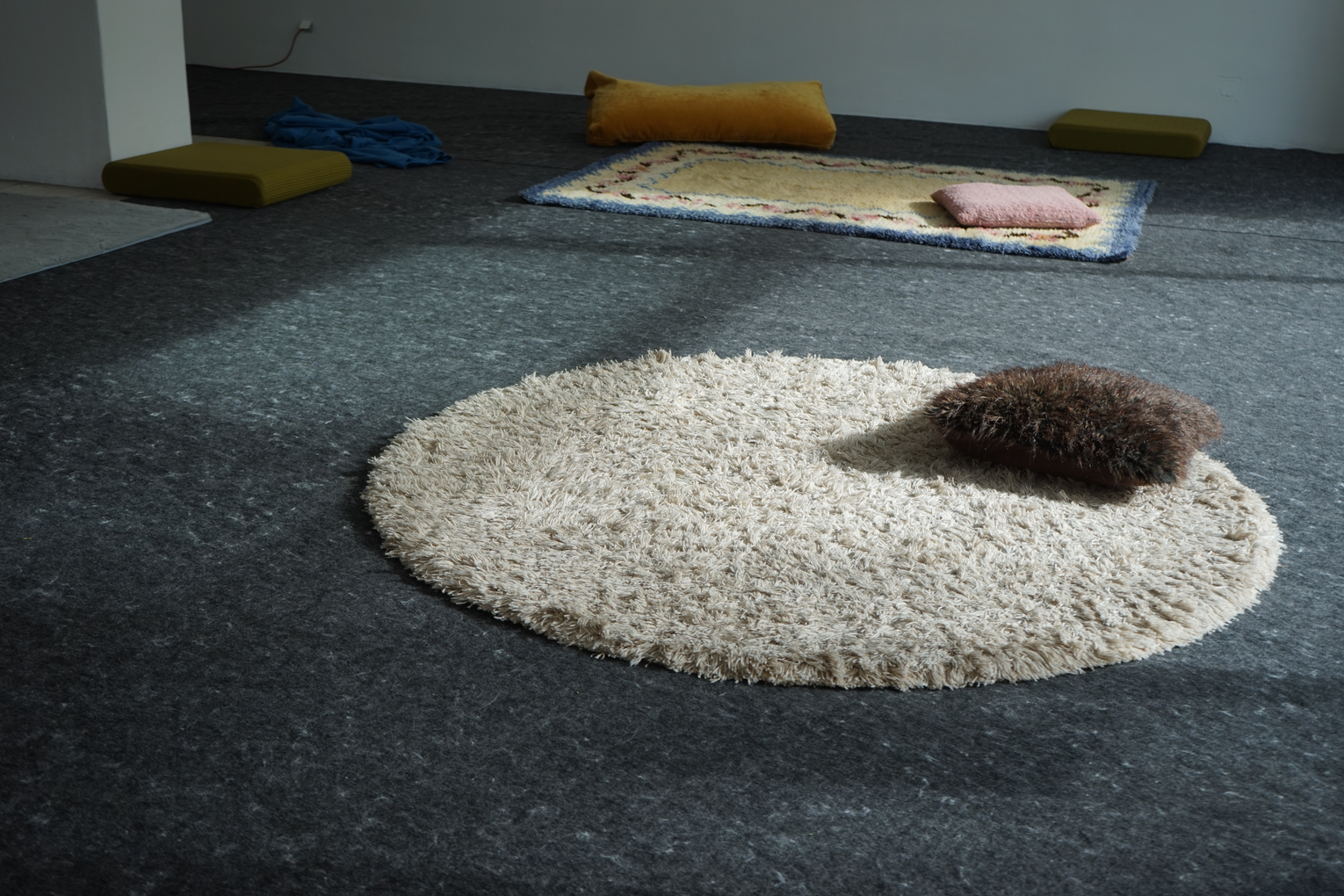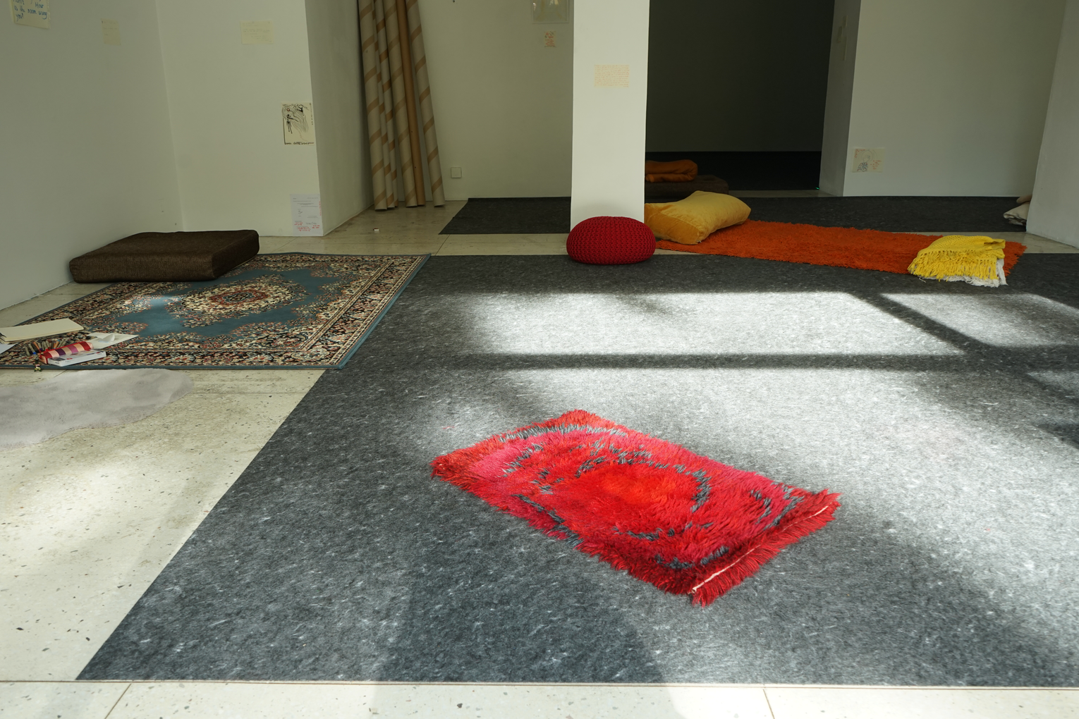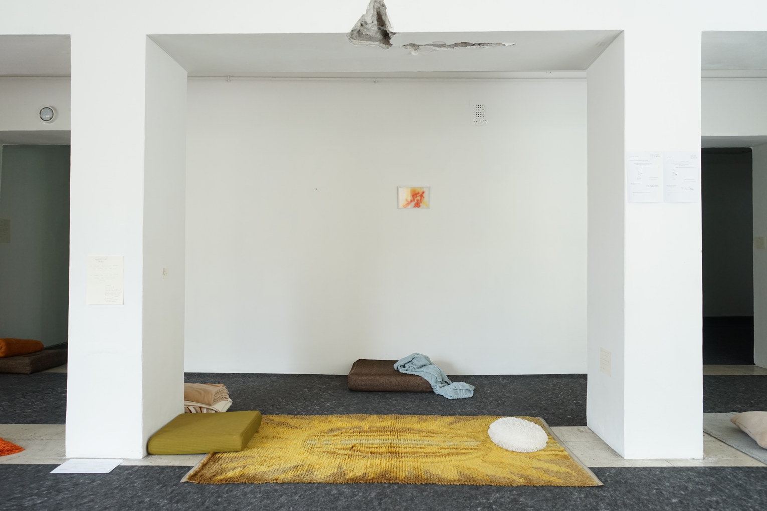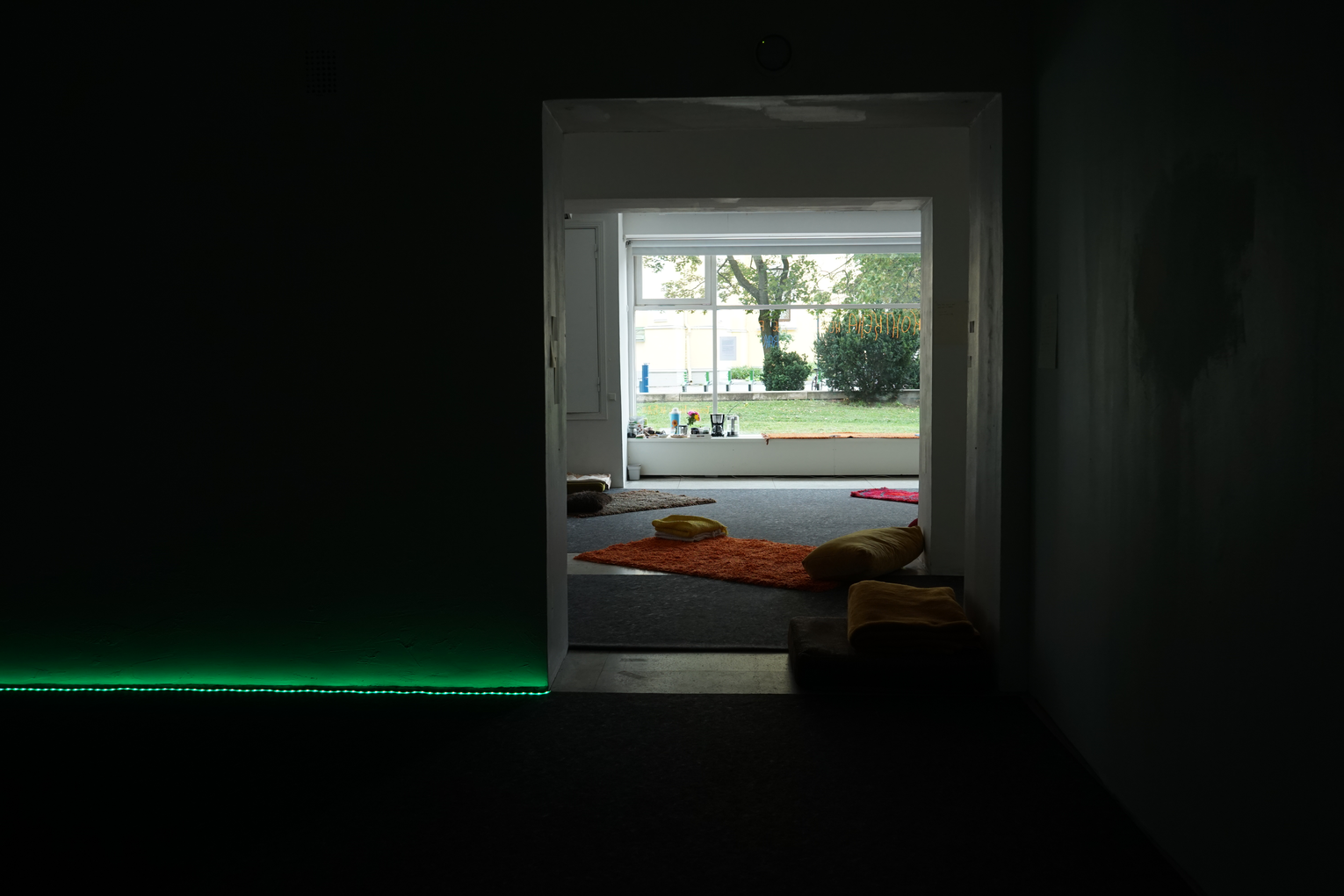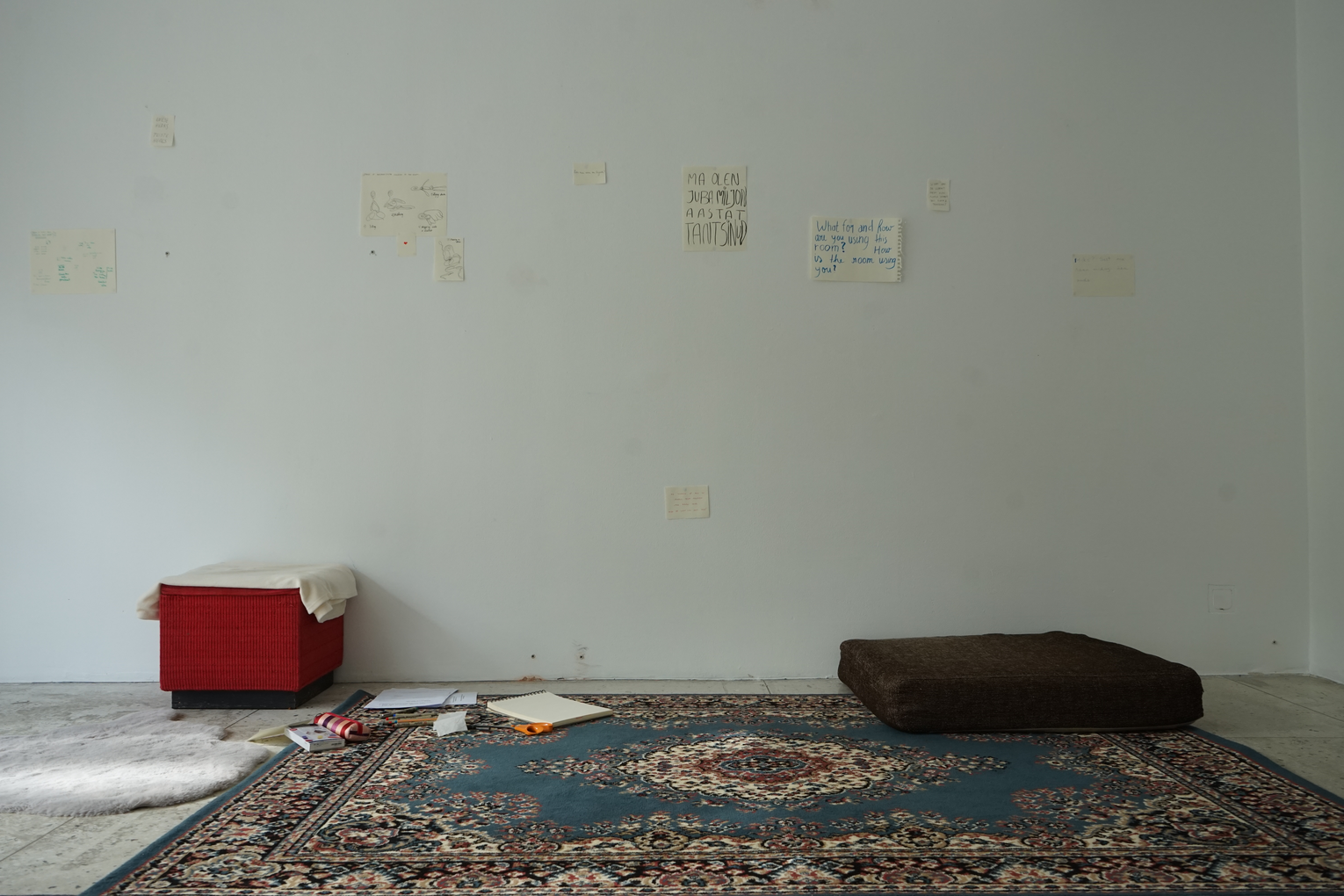 Care and comfort: the material setting of the room invite to position oneself in a place and position that feel comfortable for them; seeing the performers being comfortable and taking care of themselves gives permission to the visitors to do the same;