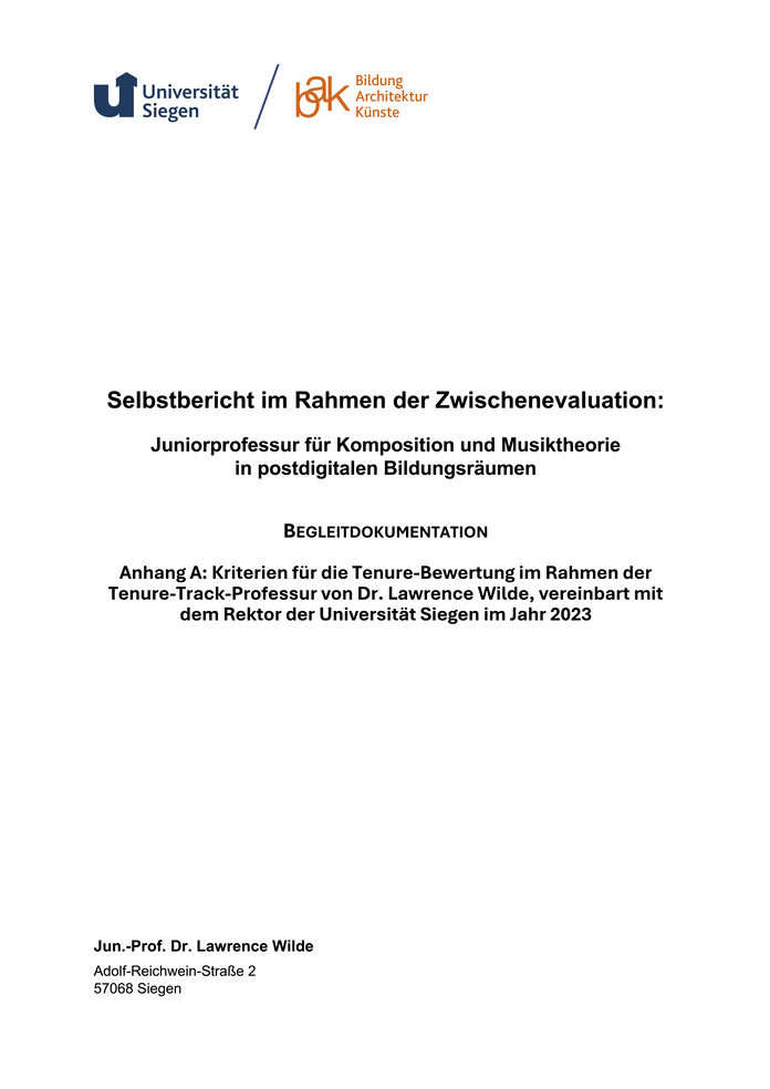 Kriterien für die Tenure-Bewertung im Rahmen der Tenure-Track-Professur von Dr. Lawrence Wilde, vereinbart mit dem Rektor der Universität Siegen im Jahr 2023