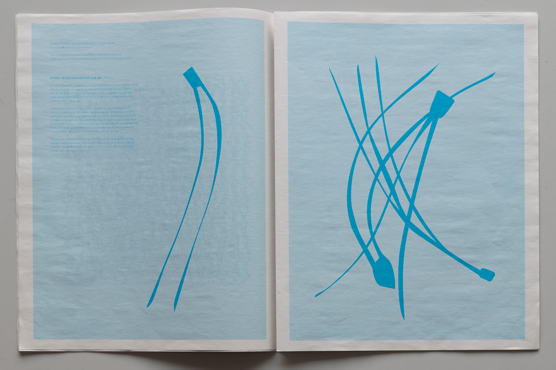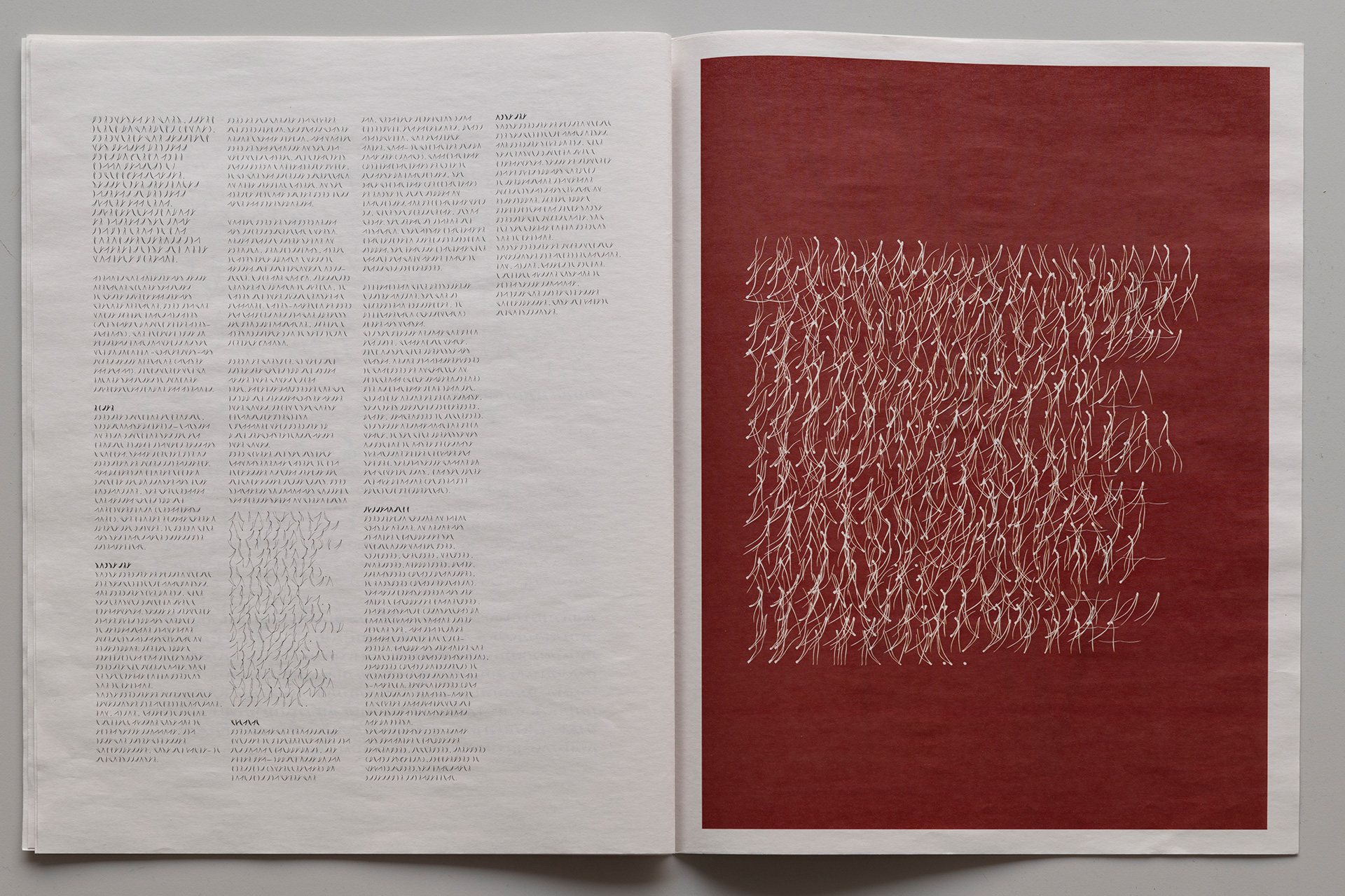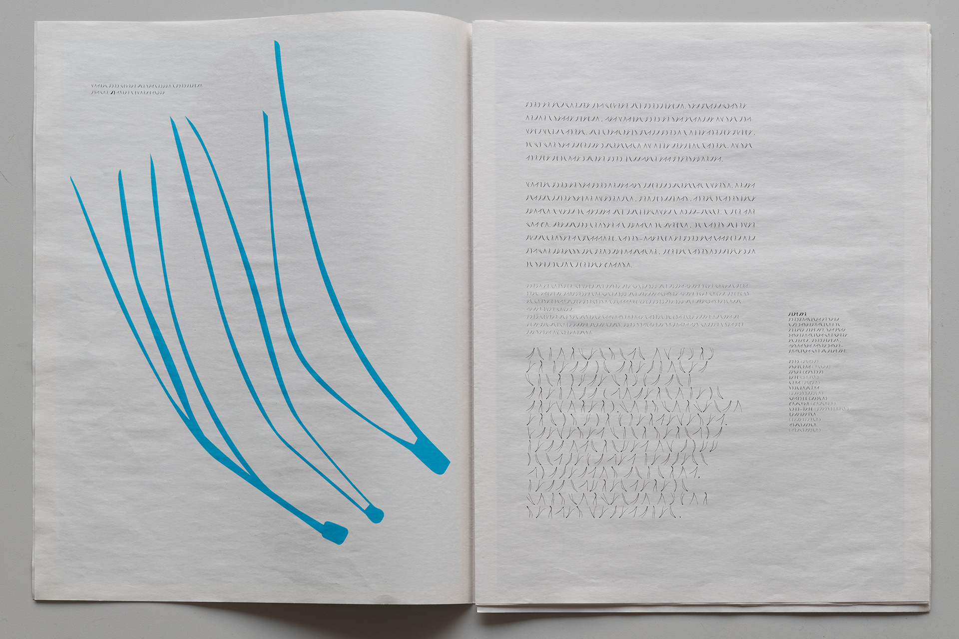 In this landscape, connections can arise to what is described as asemic writing – a writing without fixed semantic content. It can be understood as text not meant to be read in the usual sense, but rather sensed and interpreted visually. Asemic writing is about evoking a reaction.