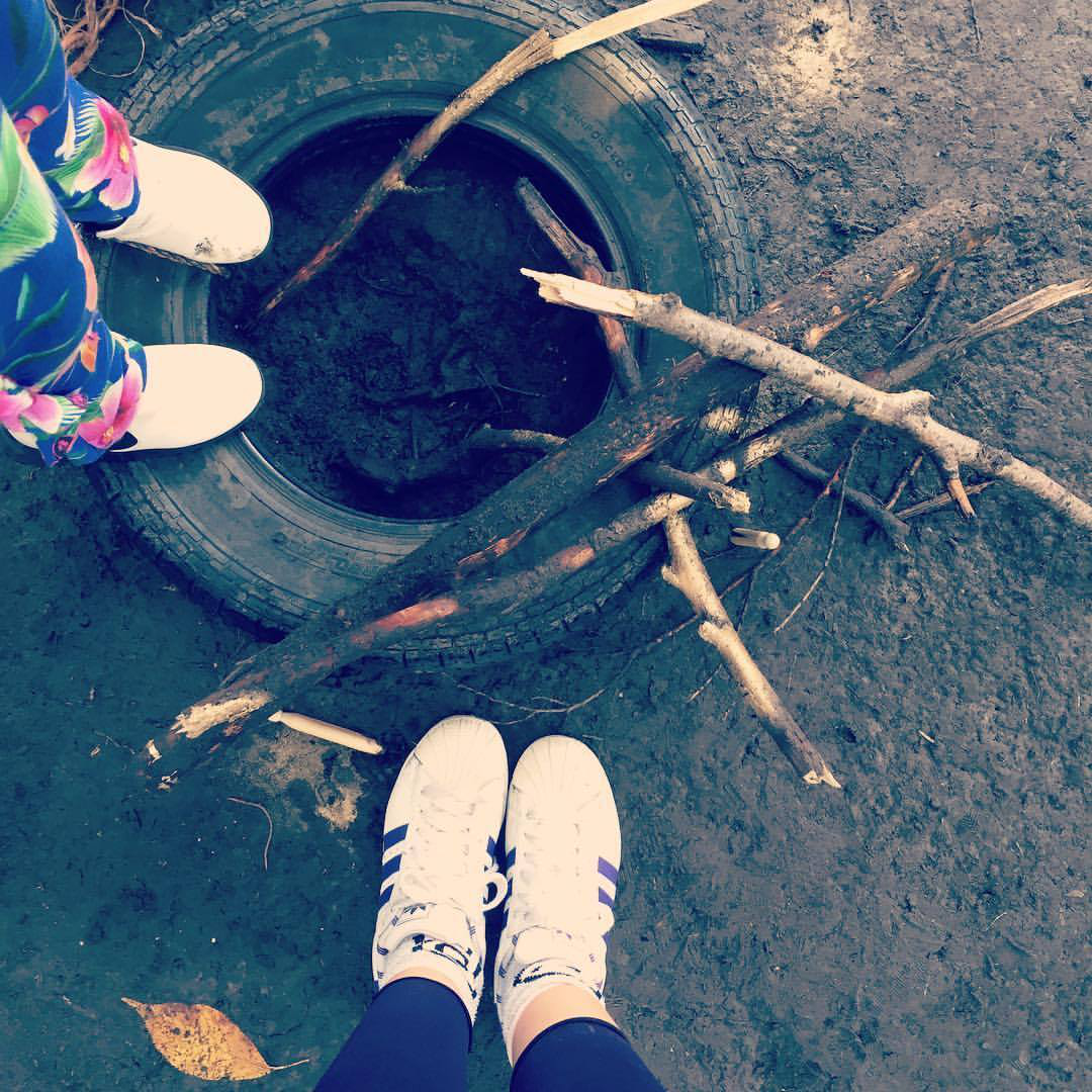Being together. All socially engaged practice begins from being together. The image above shows my own feet alongside a child’s feet. The photo, like all of the images presented in this exposition, was taken by me in the field. The child and I are making art outdoors together in Manchester, as part of the socially engaged practice discussed in this paper. We stopped for a moment, to balance on an old tyre lying on the floor of the forest. We were in the middle of building forest sculptures. This image is a fitting beginning for this exposition because it captures the central methodological axis for socially engaged practice: the art of being together. Being with communities, with children, with materiality. This holding, or being with, is central to building a relationship and to making art work. The photograph of the two feet is clearly a residue of such holding: a visual record of one of many moments of ‘being together’ and the ethics of togetherness, through which the Interfaith Childhoods project operates. This re-forming of subjectivity is a kind of code scrambling. A non-verbal quantum literacy. Bühlmann, Colman and van der Tuin explain and situate quantum literacy through stating: