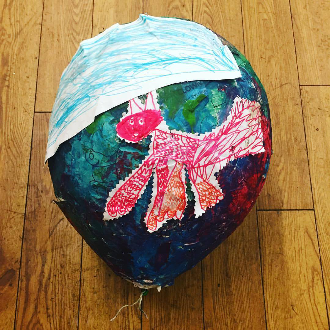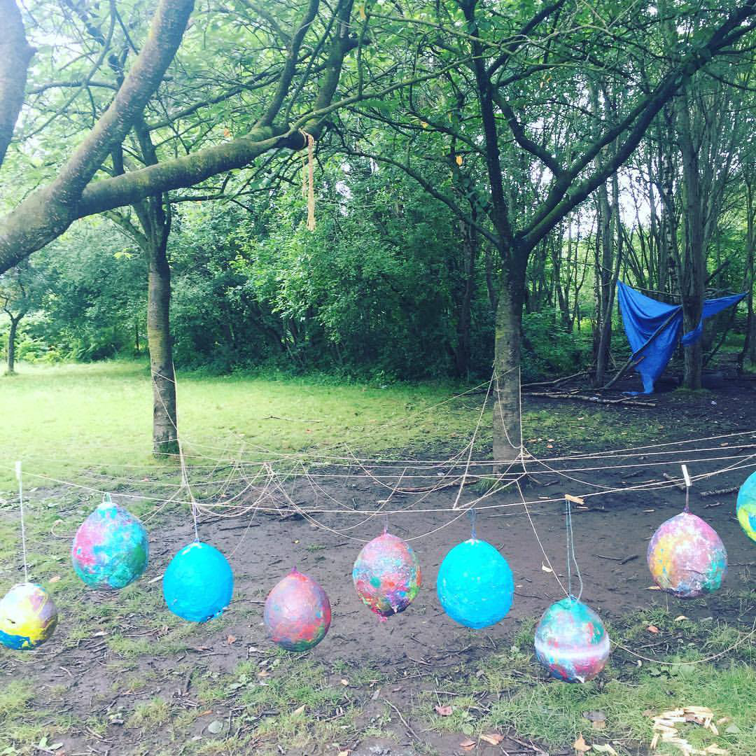 I took the two pictures of papier mâché objects below in the field in Manchester. The first image of a papier mâché balloon shows a 6-year-old girl’s ginger cat. Female ginger cats are rare, and her cat is something that ‘really matters’ to her. The second picture - the hanging balloons in the woodland - shows the collective effort children participating in Manchester undertook to put together a piece of work detailing what really mattered. The garland of balloons in the woodland is one stage of the development of the work, another moment of the objects, like the children, ‘being together.’