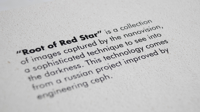 Root of Red Star is a collection of images captured by the nanovision, a sophisticated technique to see into the darkness. This technology comes from a russian project improved by engineering ceph.