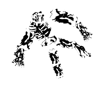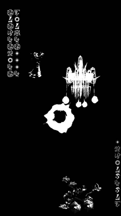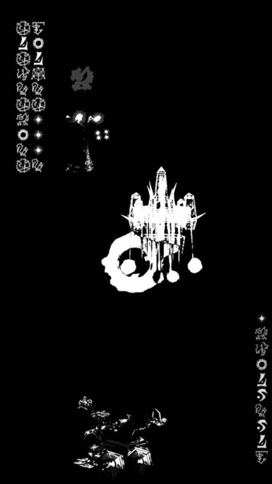 Antiquity and Ritual are the two guiding themes of the work: a prophetic stele assembled from and synthetic fragments. Images and sounds are reinterpreted and displaced into a non-gaming environment. The unfolding of the stele is punctuated by interludes where a partially indecipherable language, emerges evoking a form of communication closer to ritual than dialogue.