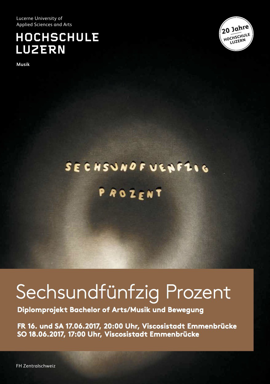 16. -18. Juni 2017, Viscosistadt Emmenbrücke: Sechundfünfzig Prozent, Diplomprojekt Bachelor of Arts/Musik und Bewegung