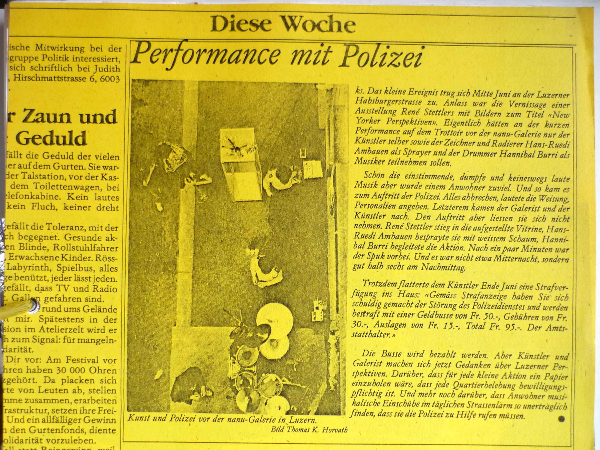 Wir sind auf (Innerschweizer) Spurensuche und beleuchten die Performanceszene der letzten 40 Jahre: Eine Karte – eine «Performance Archäologie» ist am Entstehen. Wer hat wann, wo, mit wem performt? Wir interviewen Veranstalter_innen und Performer_innen und recherchieren im Stadtarchiv Luzern. ...Wir sind eine (ergänzende) online Plattform: Snapshots berichtet über laufende Veranstaltungen; im Archiv wird vergangenes dokumentiert. ...Wir machen Innerschweizer Akteur_innen sichtbar.