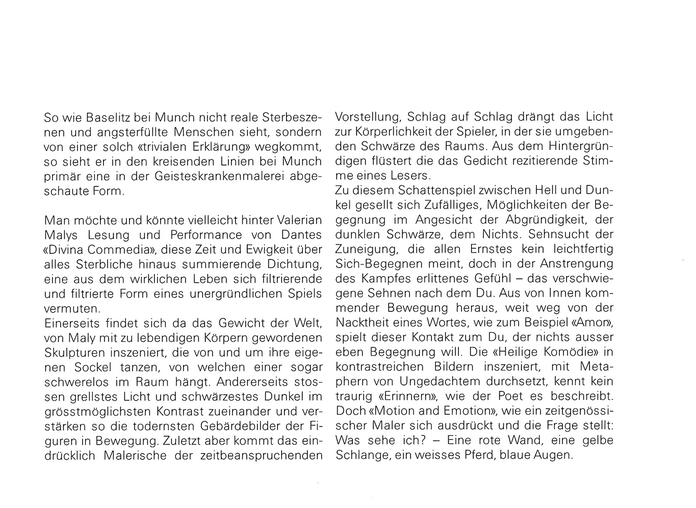 Valerian Maly Performance "Divina Commedia" - Kornschütte, Text R. Stettler, 1985
