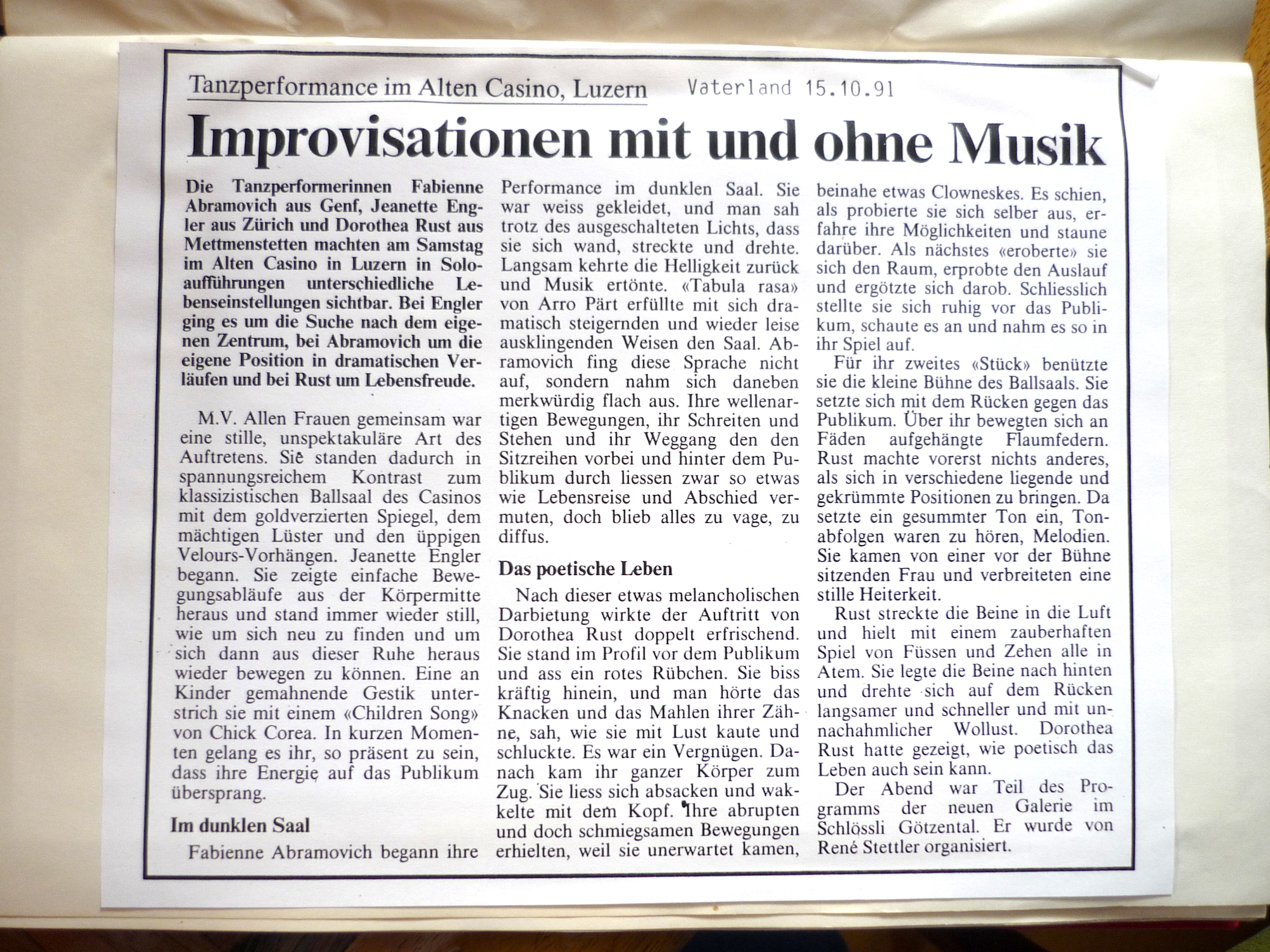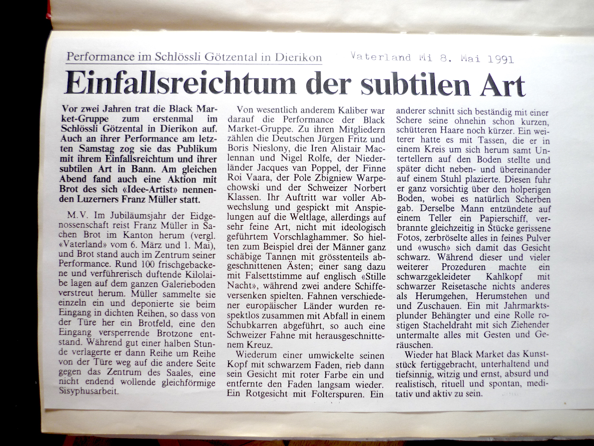 Wir sind auf (Innerschweizer) Spurensuche und beleuchten die Performanceszene der letzten 40 Jahre: Eine Karte – eine «Performance Archäologie» ist am Entstehen. Wer hat wann, wo, mit wem performt? Wir interviewen Veranstalter_innen und Performer_innen und recherchieren im Stadtarchiv Luzern. ...Wir sind eine (ergänzende) online Plattform: Snapshots berichtet über laufende Veranstaltungen; im Archiv wird vergangenes dokumentiert. ...Wir machen Innerschweizer Akteur_innen sichtbar.