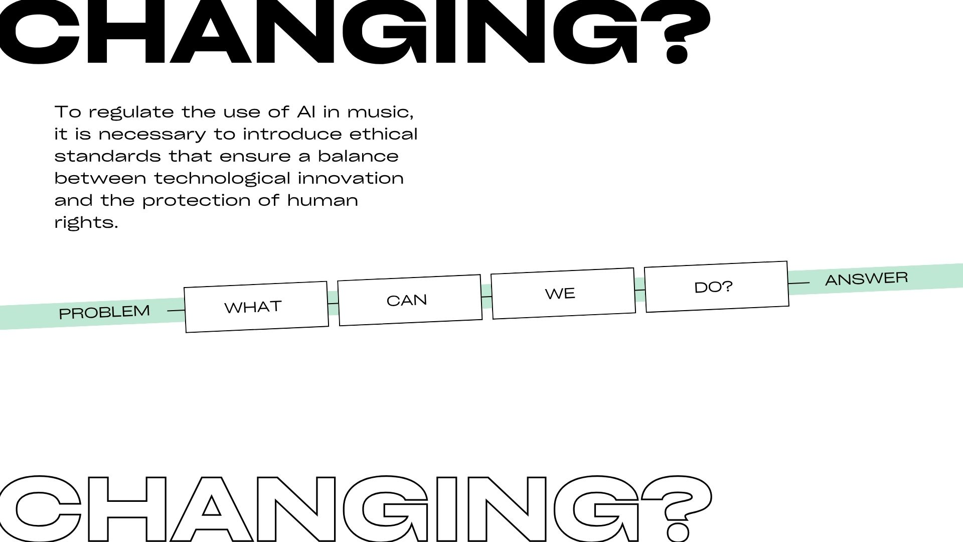 To regulate the use of AI in music, it is necessary to introduce ethical standards that ensure a balance between technological innovation and the protection of human rights. Definition of authorship and legal status can help with making distinction of roles in music industry clear. Music that was created only with AI should be marked as an “AI product” and not be eligible for the copyright protection. Developers of AI music tools should be required to publish information about whose music or whose data was used to train the models. Disclosure of training data can help to prevent copyright violations. Moreover, it is important to ban creating vocal imitations of real performers without their explicit consent. For example, Spotify deletes tracks that violate this rule. And the most important – prioritizing of human creativity. AI music tools should be used and positioned only as an assistive technology.