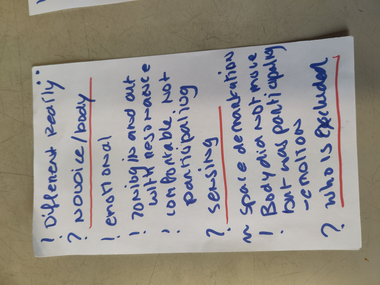 -a person with a musical background says: I’m thinking about participation, about exclusion and inclusion. My body was participating even without moving.
