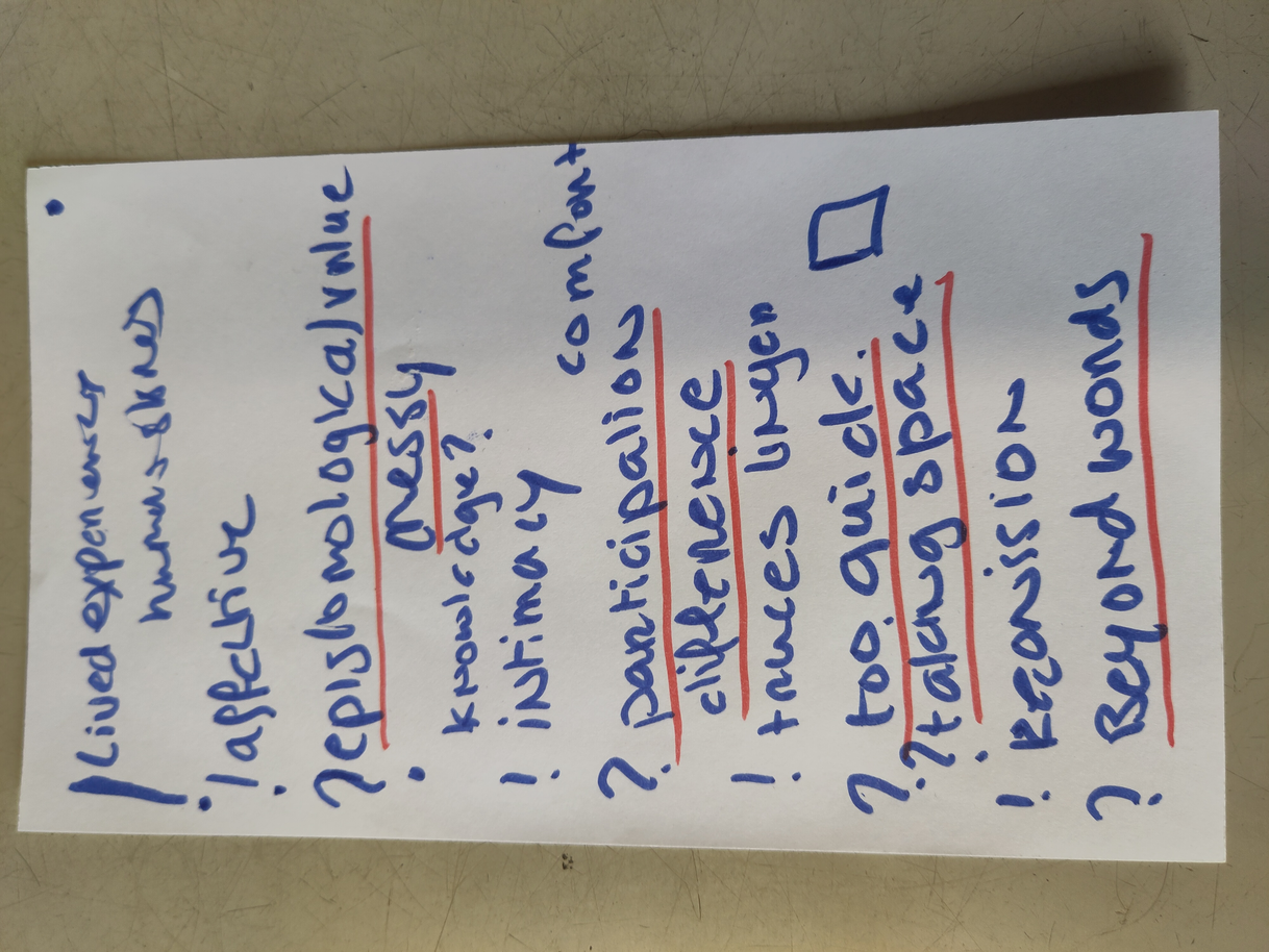 Notes breakout session 20 june 2025 on embodied knowledge,