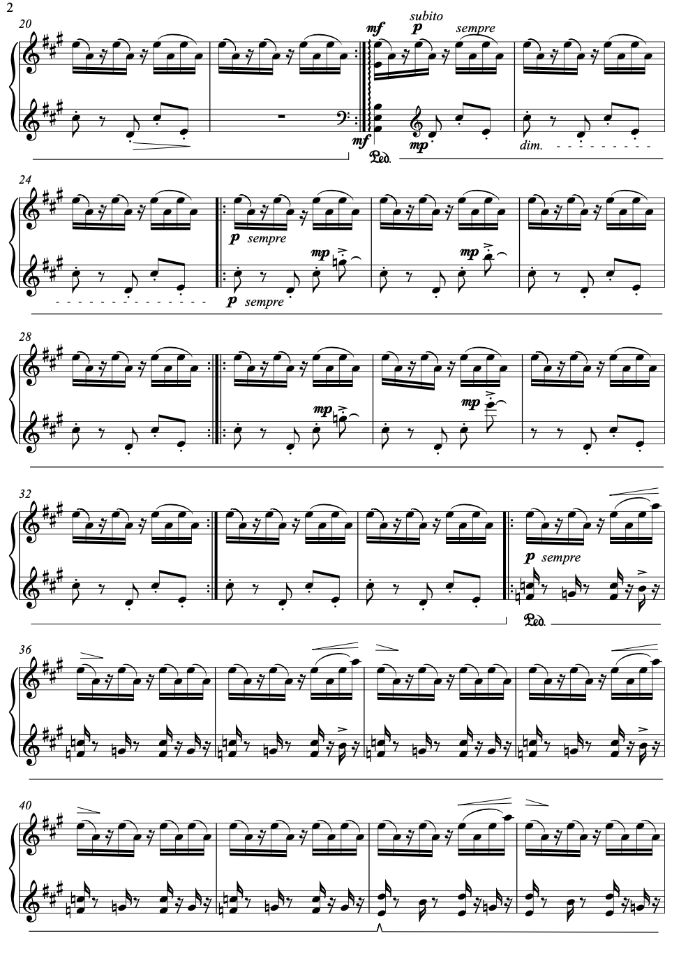 (Tonality: there’s not a fixed tonality, but the piece begins and ends with the E on the bass, which triggers and supports everything else. In addition, there are other key moments that insist on the note E)
