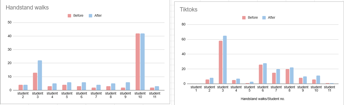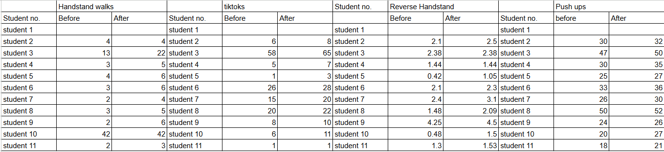 This week they said that they where managing to perfect the skill to do more, having better posture so that they hold more still in the handstand for example.