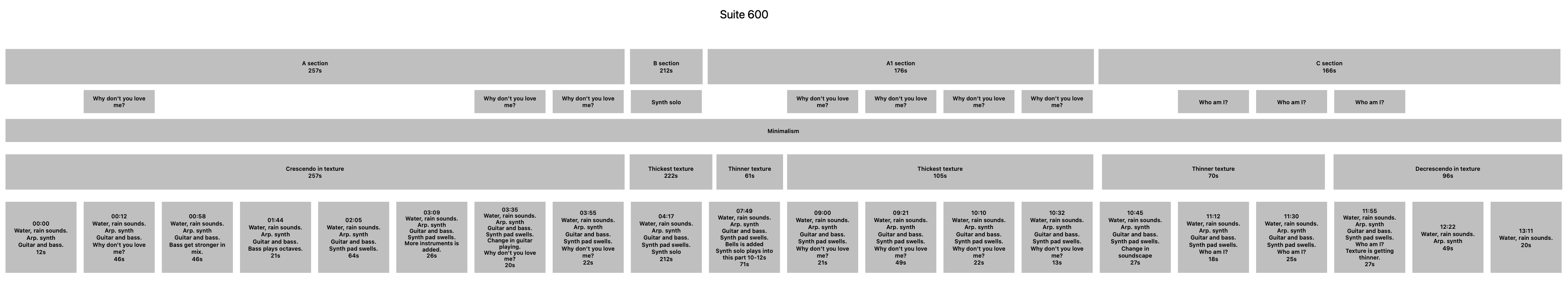 texture. Suite 600 starts with a long crescendo in the texture leading up to the synthesizer solo