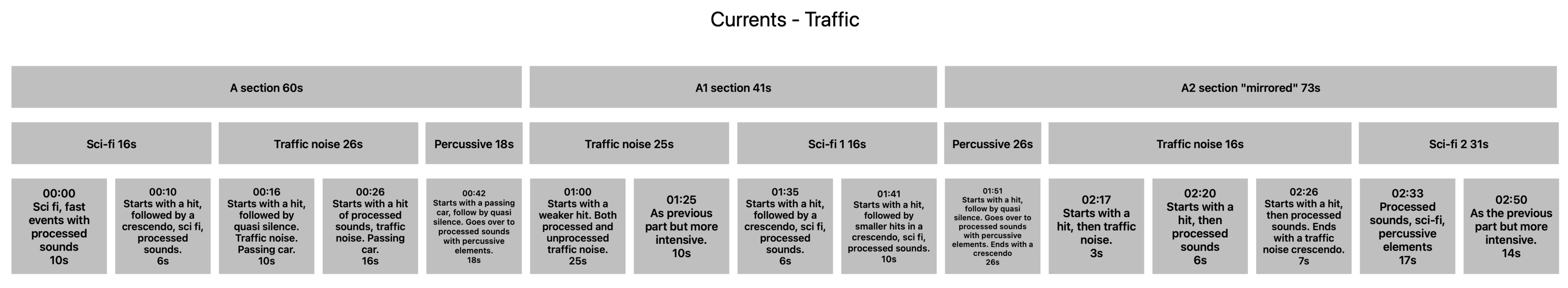 In my analysis of Currents – Traffic, I’ve found the macroform to be in three parts. On the