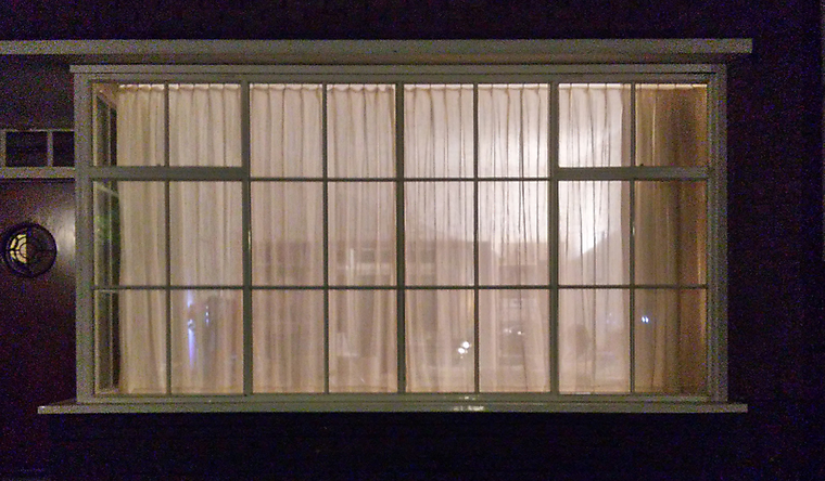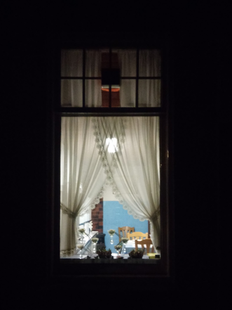 The space where life takes place in the night time is mostly in the house interiors. We become aware of this transition through the lit windows, what they reveal, what they let us see.