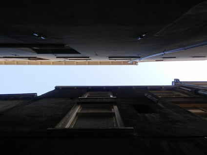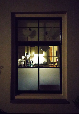 Staying at the shade and looking through the windows is equivalent to looking outside of the darkness, into fragments of everyday life and how they intend to become presented and exhibited to the dark unknown.