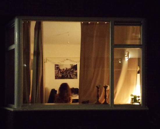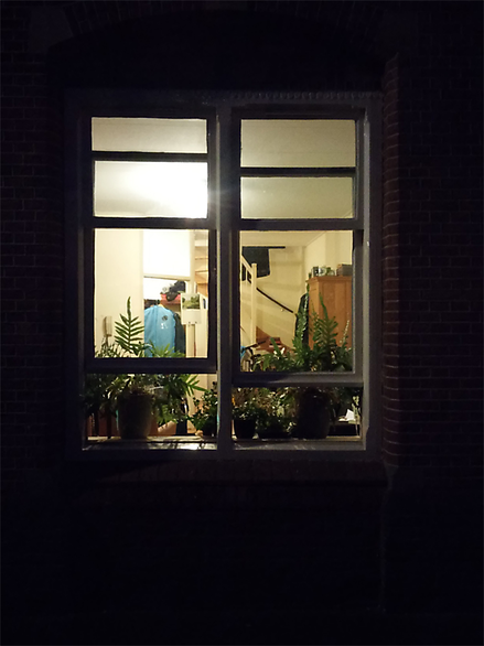 Life goes on indoors, but does not do it by hiding or finding shelter in a retreat; it is there for you to see. Being confronted with these bright encounters in the night, private space is becoming visible to the outsiders without any obvious hesitation; on the contrary, the 'voyeur' is tempted to peek through.