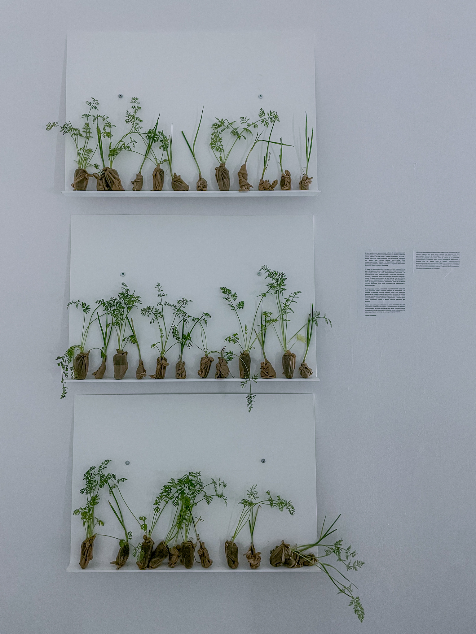 Inspirada por autoras e autores como Donna Haraway, Rebecca Schneider e Umberto Eco, as obras propõem novas formas de pensar a conexão e a coexistência através de esculturas vivas, materiais biodegradáveis, ações performativas e instalações sensoriais. Tornam-se metáforas de cada fronteira que filtra e sustenta tensões. Em todas as obras, encontramos um espaço de relação entre o eu e outras espécies, entre visibilidade e invisibilidade. As obras não são monumentos a serem observados à distância, mas sim presenças a serem sentidas e utilizadas. Trata-se de reimaginar os nossos limites, não como fronteiras ou barreiras, mas como limiares vivos, onde novas relações e conexões podem florescer.