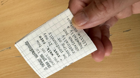 These pocket-sized notebooks also contained quotes from Jurate (seen here) and Annikki - "You want the cracks", fellow artists. -----nothing is done alone-----