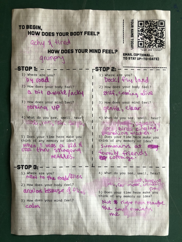 i guided my fellow artists on a care(ful) walk. exploring how we can move slowly together to find intimacy with ourselves and the place.