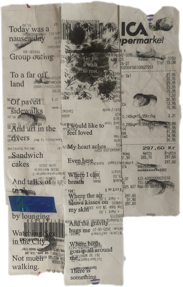 hej hej or hello. i am a walking artist and designer with a relational and materially engaged practice. currently based in Tiohtià:ke (Montreal, Canada) but i did not grow up there. in 2021 i developed chronic nerve pain which has brought themes of care, rest and slowness into my walking practice. during my time at WAP25 i explored the cracks formed through the tension between resting and creating or playing. discovering that the real work, for me, over these two weeks was in fact the struggle to allow my body to rest which brought up questions such as: can we walk without moving? how do we walk with care? how far do we have to walk, as walking artists, to call it a walk? additionally, questions of how to connect to a place as a visitor and what is community came up.