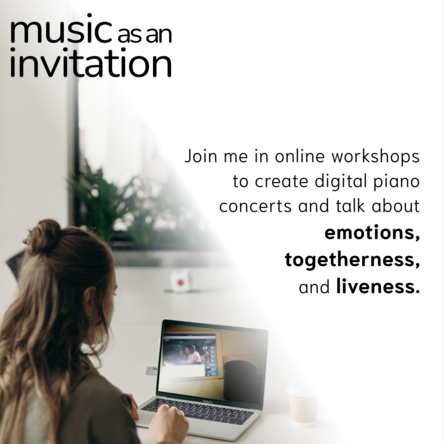 As for the live-streamed concert rsvp: piano, toy piano, electronics, and actions, besides advertisements to the general public, I got in contact with specific audience members, most of whom were musicians and artistic research practitioners. I explained to them the participatory activities which would take place during the concert. Having this informed group was indeed helpful in encouraging other audience members to engage with the participatory proposal. Among other actions, the participatory activities of the concert included walking around the room while playing a sound with their mobile phones, as part of one of the pieces in the programme.