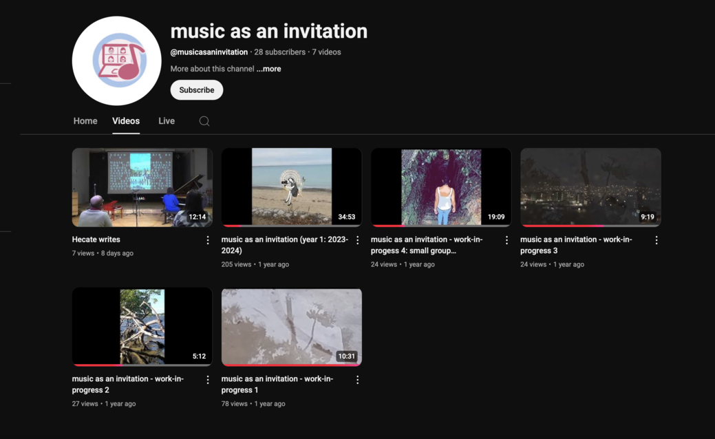 Since the development of Hecate writes was part of the second phase of the project music as an invitation, most of the digital infrastructure had already been organised in the previous year. This infrastructure included: a dedicated website, the arrangement for the production of publicity materials, a Zoom subscription, Final Cut Pro, the project’s Youtube channel and Instagram profile, as well as the project’s Microsoft Onedrive and Google Drive folders (for the storage and sharing of files).