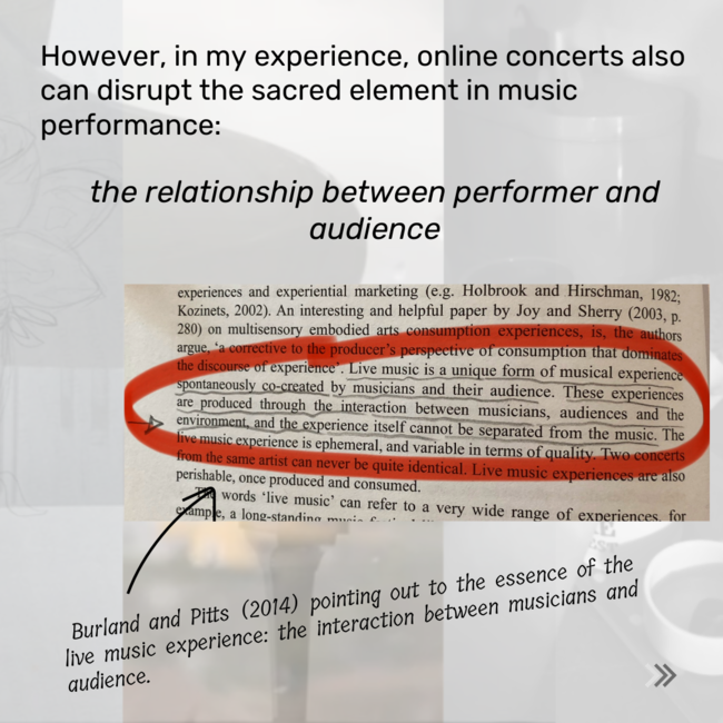 When reflective processes such as free writing or voice recordings are done soon after the concert, emotions can be captured in the freshness of the moment. However, in some situations it can be also interesting to take some distance and give some time before doing the exercise of writing - which can then reveal aspects that have been engraved in the memory.