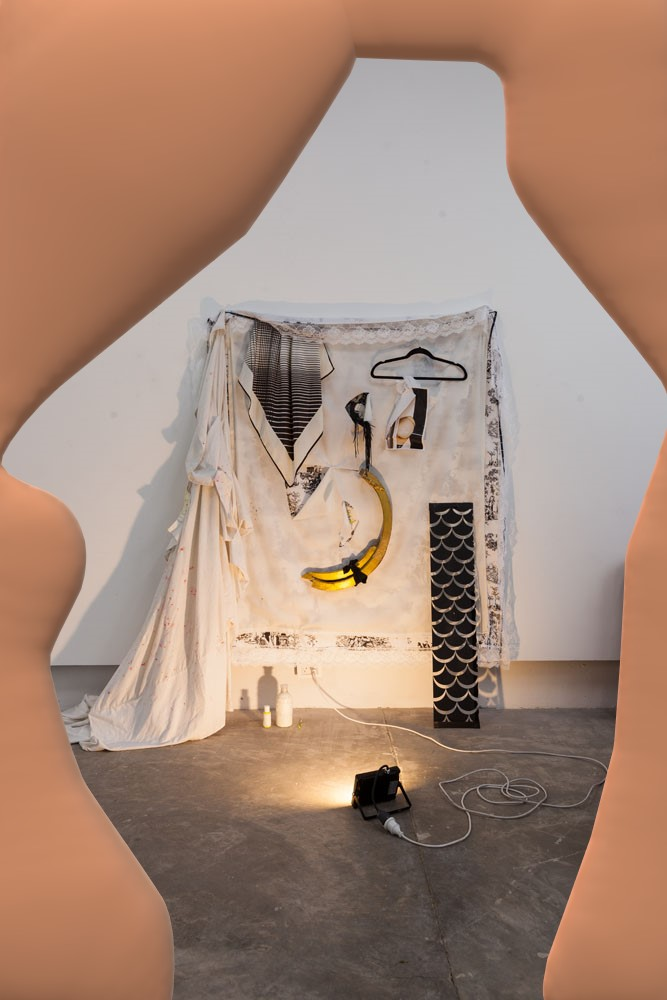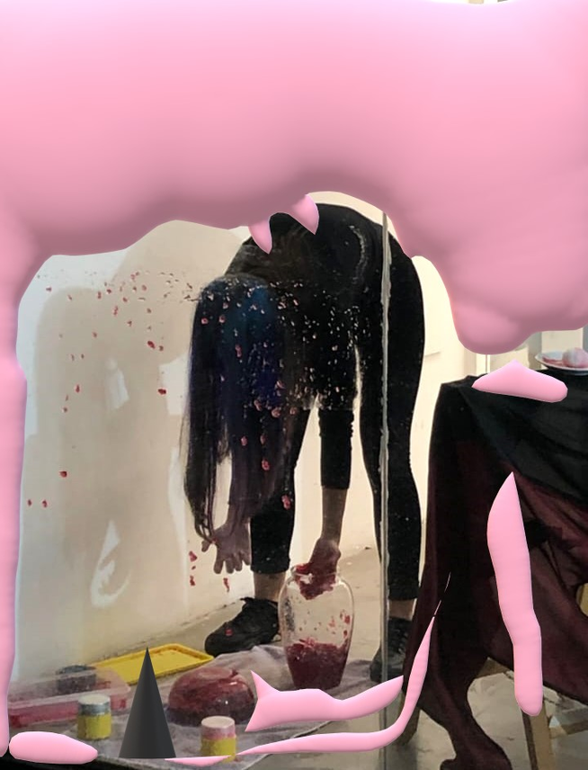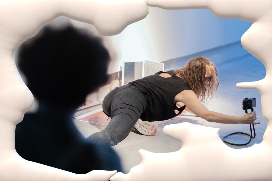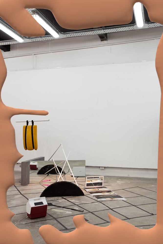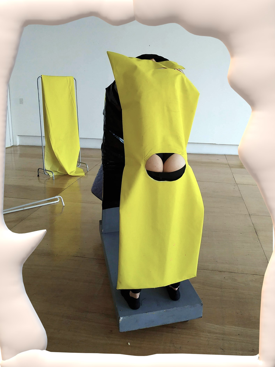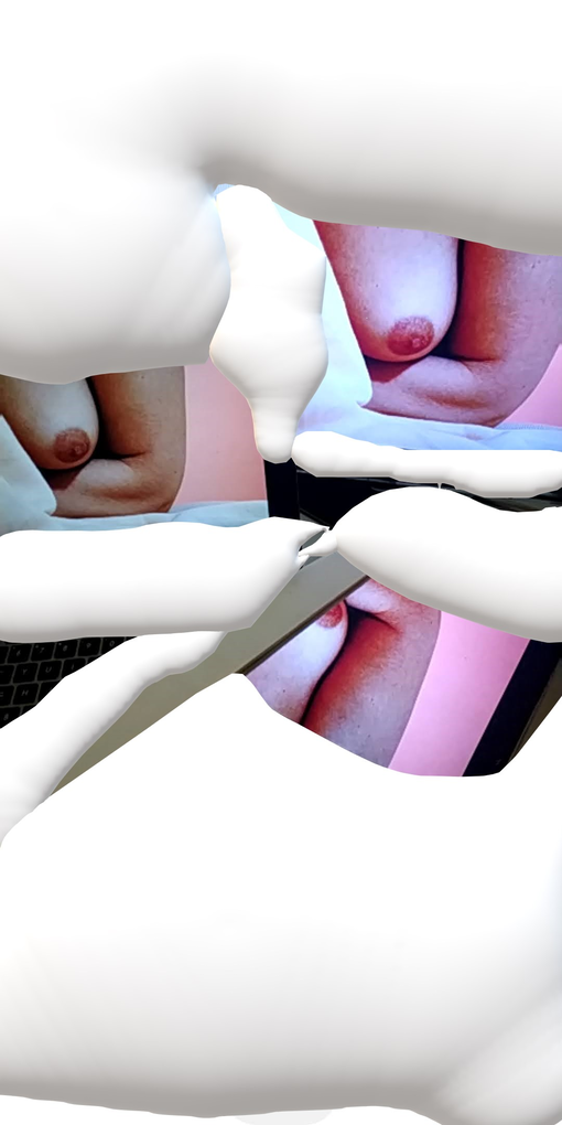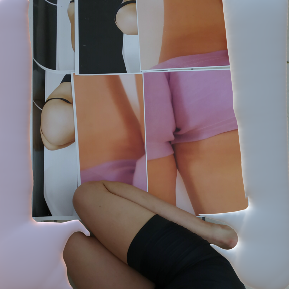 Before Transdisciplinary artist synthetized Las guerras púdicas method, there was a body in search — a series of scenes weaving meaning among relationships & collaborations than she later turned into collages. These collages function as veils over raw material from performance rehearsals conducted in 2019. The rehearsals, blocks of time and procedure dedicated to testing images, sensations, movements, postures, and sounds, focus on the liminal: transitional moments that are neither one thing nor another, ambiguous periods rich in possibility and openness. These sessions are photographed as a way to mark a symbolic tattoo, the sensations associated with the image. Subsequently, they are digitally intervened, resulting in collages that are printed, mounted on wooden stretchers, and reintegrated into the space as combinatory elements for future rehearsals. In this way, a critical mass of compact and coherent collaborative work is generated, aligned with the type of conglomerated feelings. This process can be summarized in the concept of performance as the primary mode of autobiographical research, but one that avoids the confessional mode by conducting a neutral analysis afterwards.