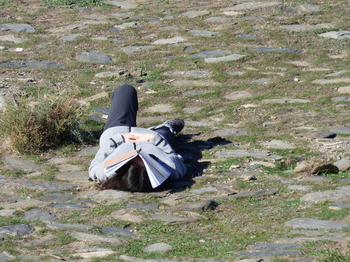 “I’m becoming a stone, one of these flat stones surrounding me. They were placed here by someone. This place is a threshing ground, where they used to prepare the cereals to make bread. But it hasn’t been used in many decades. And so now wild grass grows in between the stones. These stones have endured the threshing of wheat for many years. Now, they become wild stones again, although displaced from their original place in the world for their human use. That sounds familiar: to be displaced for human use. And to inevitably remain available for it, and exposed to its erosion”.