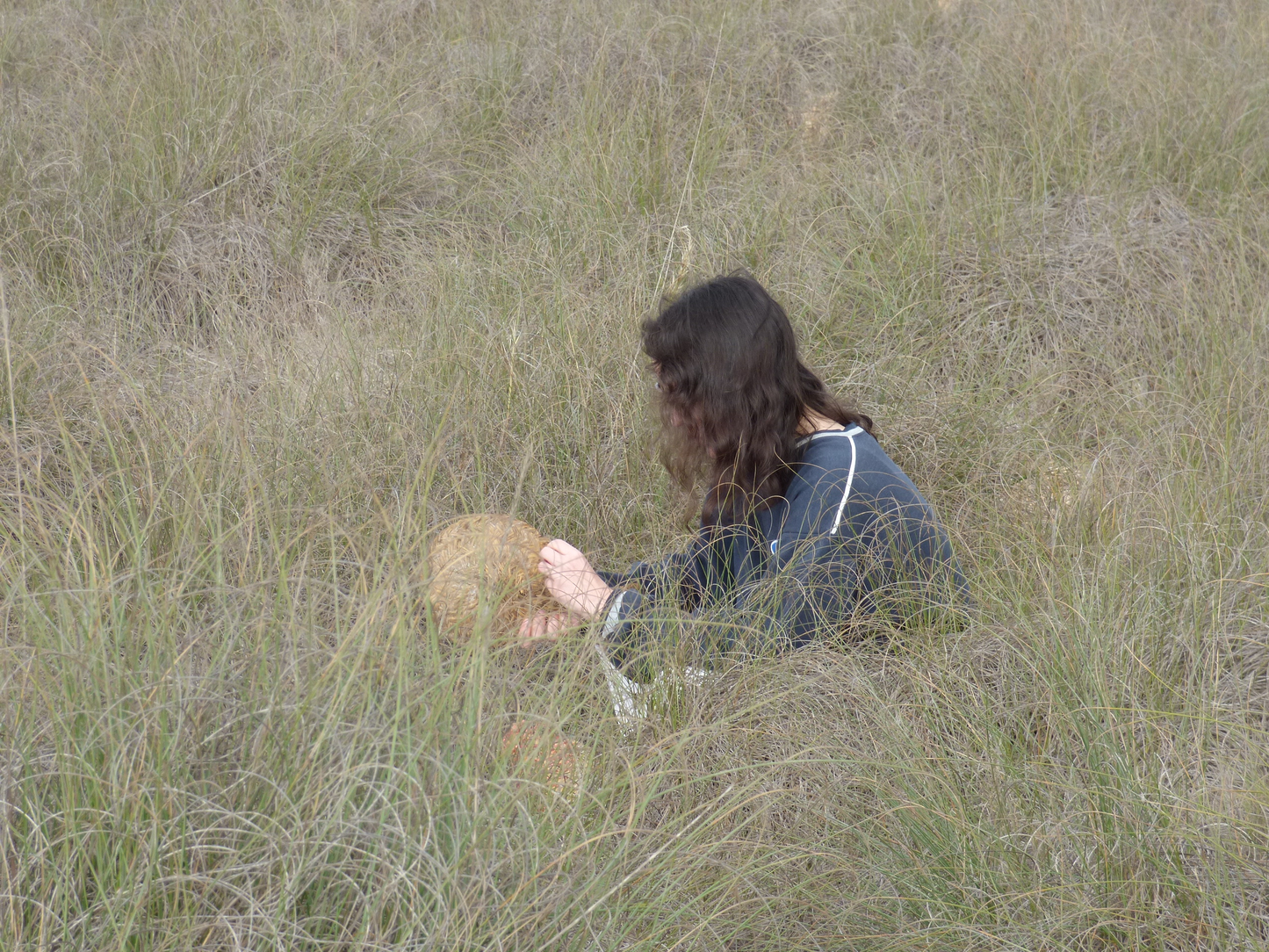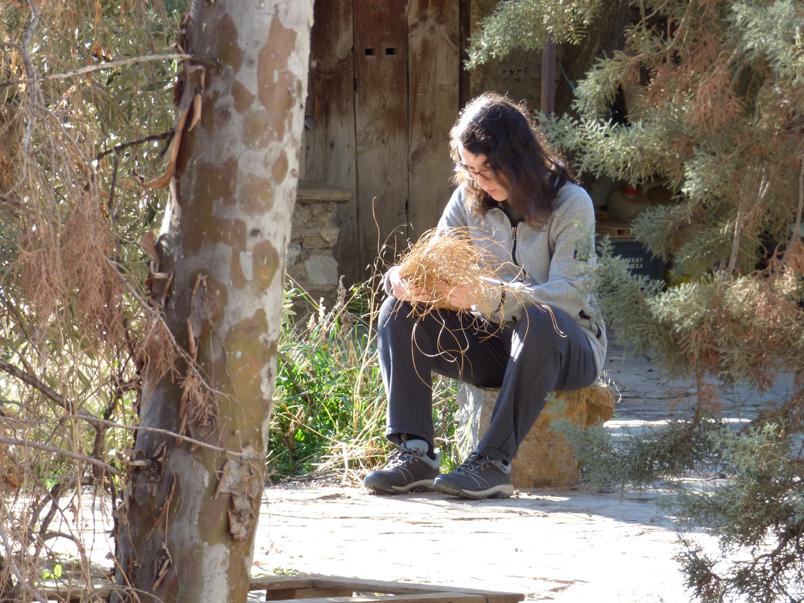 Touching an esparto coaster among esparto bushes (Níjar, Spain). Photo by Juan A. Miralles. December 2024