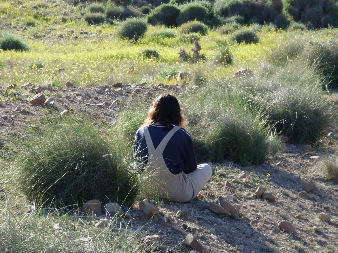 “I’m in an espartal, the place where esparto bushes grow. I can hear the sound of the waves, not so far away, lulling me to sleep. The wind rocks me slightly, and the sun warms me up. As time passes, I feel more like a bush, less like a person. Some of these bushes will stick around for several decades. I’m just remaining with them for a few minutes. Remembering, imagining…