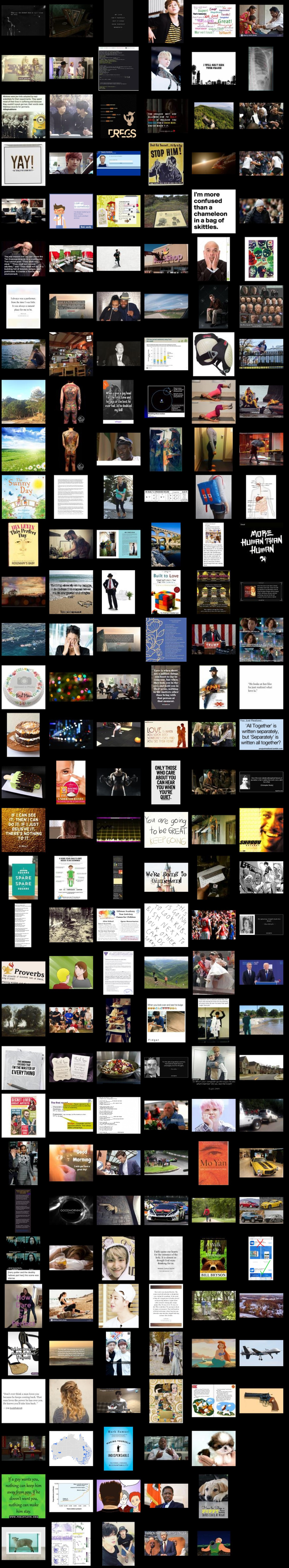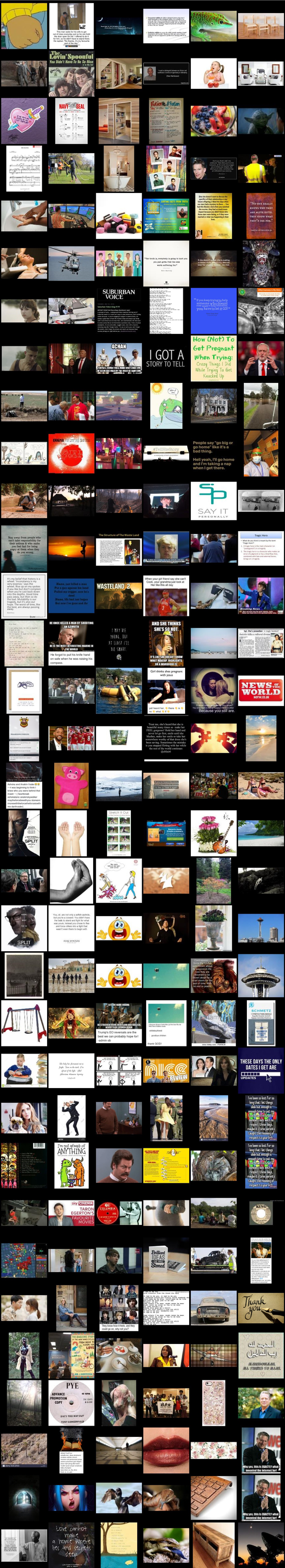 When it was first developed, the intention of the cut-up technique was to create new poetic connections and find unexpected (often subversive) meanings in the abundance of texts found in mid-twentieth century lives. In the modern world, texts are more abundant than ever, and with internet communities meeting in forums online we have a rich resource of grassroots voices, offering a view into the psyche of the internet-using community that could not be found in the institutionally sanctioned writings of journalists and published authors. Our technique, therefore, makes use of super-abundant source data and a super-charged, machine-driven cut-up process, making new worlds and new imaginings from the texts of others.