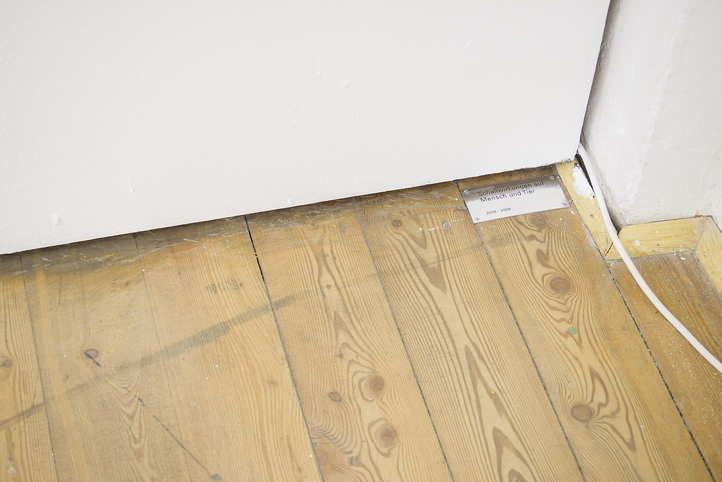 - A small visible component manifests more permanently the entire process within the exhibition space: a metal plaque with the text Schallwirkungen auf Mensch und Tier 2016 – 2026 was attached on the floor next to the storage wall, behind which the main sound intervention is situated. As stipulated in the contract, the plaque will remain visible as long as the intervention is in use. The metal plaque also symbolizes the presence of a title in the space.