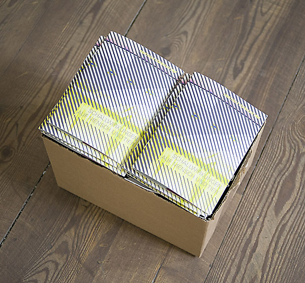 - A cardboard box presenting the A5 booklet – such as is customarily distributed at all shows produced at KEX. As one of the few visible components, the booklet became the space where the working group carefully addressed the questions of visibility, perception, and imagination, or ‘placebo’ that had been central to the group’s thinking about - what was after all still called - an ‘exhibition’ or a ‘show’. Describing in the booklet exactly what had been done would destroy the efforts: one task of the working group was hiding the hidden… to show something that should not be seen… an experience of something that was not there...