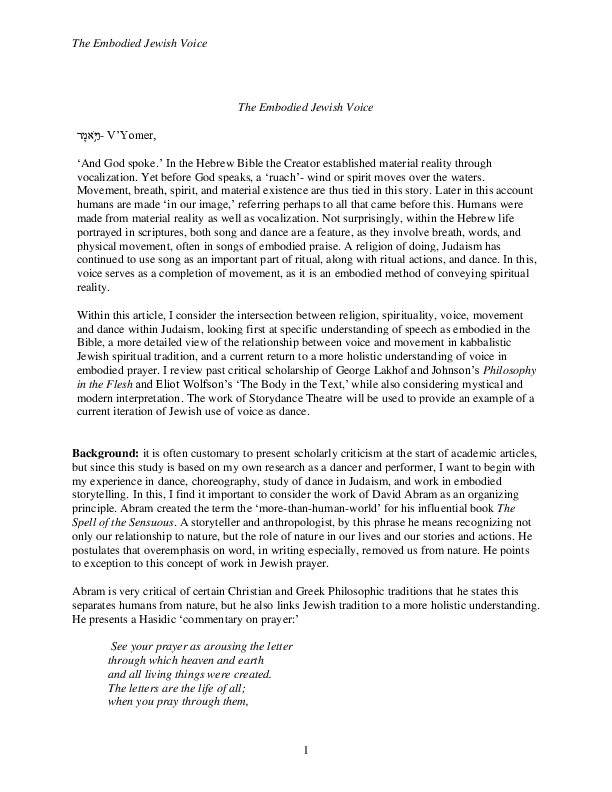 the spirits of heaven and earth…are the inexplicable, the unfathomable in nature. The sound of the human voice and the movement of the human body, can alone bring us near to glimpsing these worlds (Laban, 1975: 49).