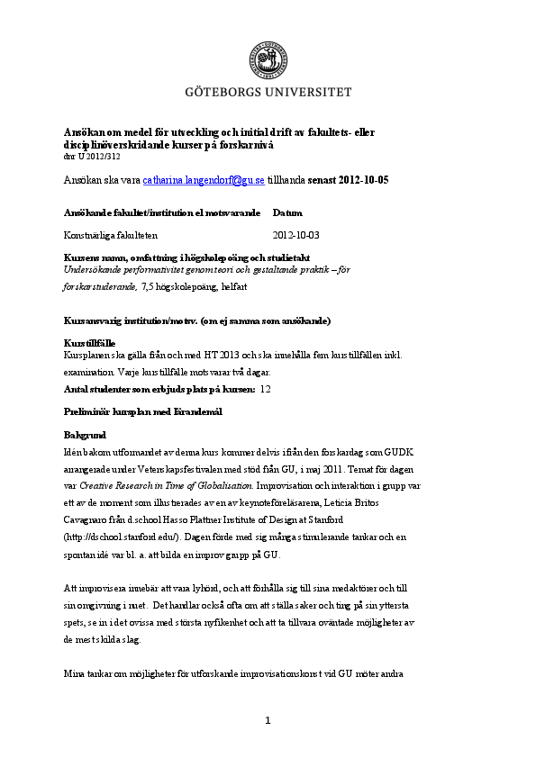 Univ. of Gothenburg, Gothenburg 5 HEC/4 days 2014-01 2014-08