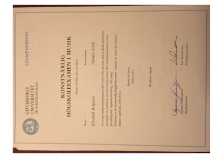 Individual Music Program (MFA in Music) University of Gothenburg, 1996-2000