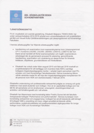 Academy of Music and Drama / Academy of Design adn Crafts, University of Gothenburg. September 2013-juni 2015.