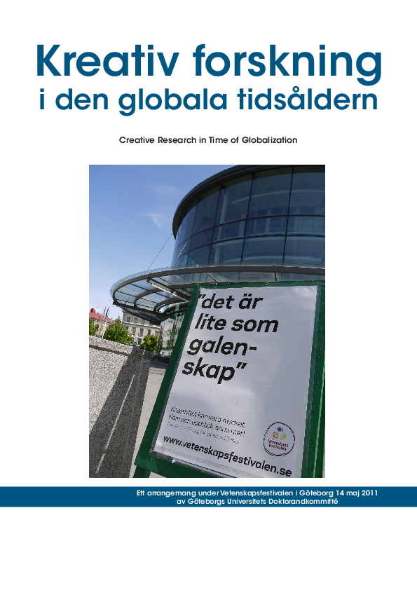 International conferens in collaboration with Univ. of Gothenburg Doctoral Committee and Gothenburg Science Festival, financed by University of Gothenburg Board. Keynotes: dr. Leticia Britos Cavaliero, D-School, Institute for Design, Stanford University; prof. Hans-Georg Kuhn, Institutionen för Neurovetenskap och Fysiologi, Univ. of Gothenburg. Panel conducted by Prof. Sven-Eric Liedman.