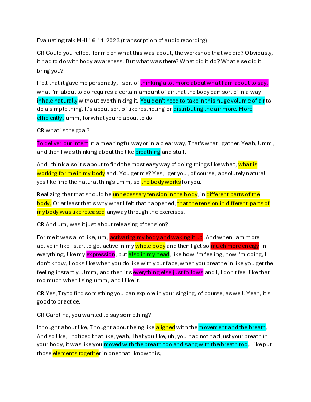 · How does working with physical awareness during the workshop influence your singing/vocal practice?