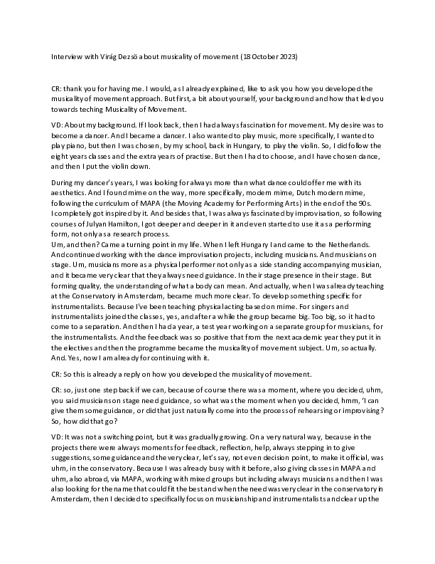 · Improvisation with sound and movement is an important aspect of the musicality of movement approach. Did you improvise with movement and sound/voice before?