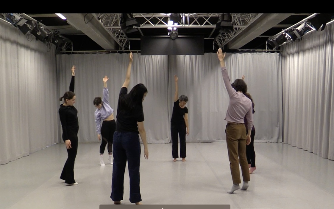 The walking series consists of walks, starting with simply walking in space individually, getting the sense of what a phrase is, working with leading and following, decision making—regarding speed and timing—working as collective of individuals or as one organism. It has countless variations.